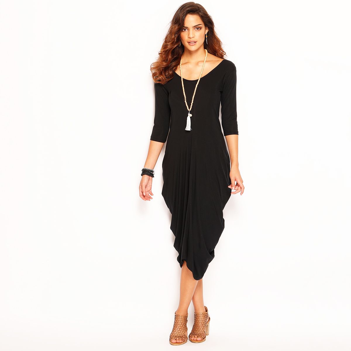 #8199 - Libby Dress. Designed and created due to popular demand, the all new Libby Dress is a stunning take on our sleeveless Alannah dress. With the addition of a 3/4 sleeve, perfect to transition in to Autumn, and made from super soft, light, Micro Modal. The Libby is perfect for any occasion whether you feel like dressing up or being casual. The signature drape of of the dress naturally and gently shapes the body and is incredibly comfortable to wear.
