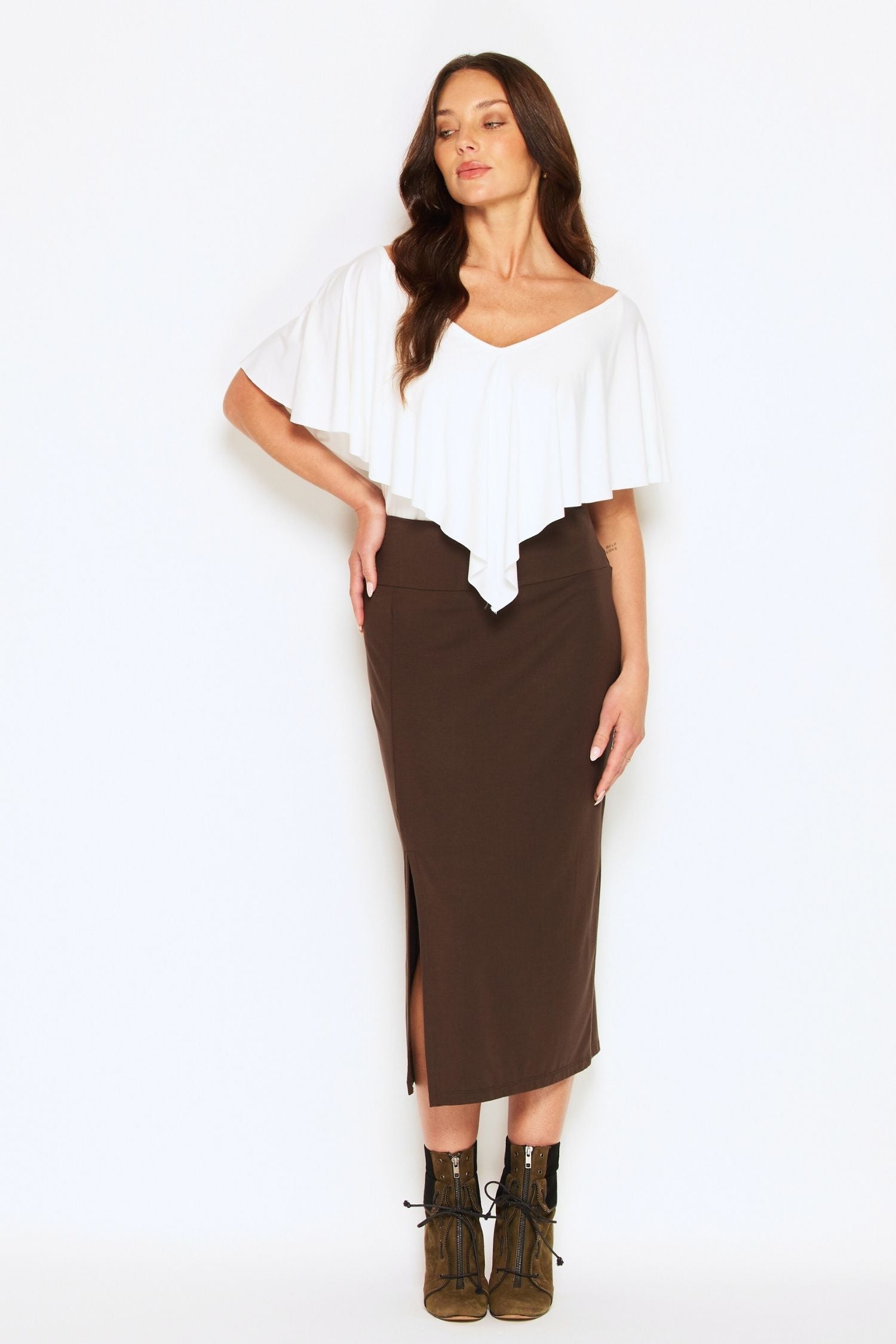 Tallia Skirt: This classic calf-length skirt, is designed with a stylish side split for added comfort and movement. Made from soft, breathable fabric, this versatile skirt is perfect for all-day wear—whether you're at work, out to lunch, or relaxing on the weekend. The flattering fit gently hugs the body, offering a sleek silhouette that's both comfortable and chic. An easy-to-style essential for any season.