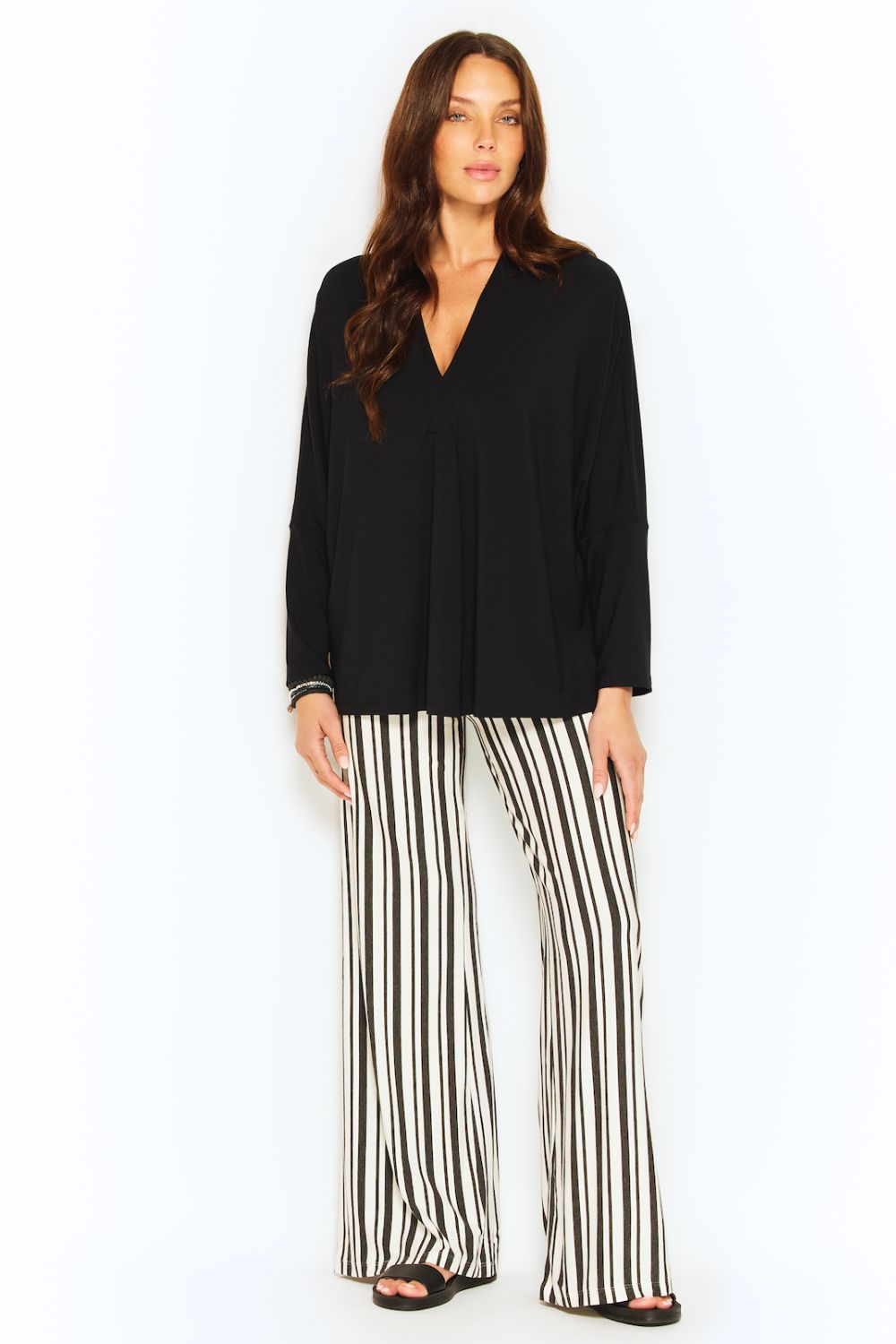 Bell Pant - Charcoal/Natural Stripe - Comfortable and chic, these pants are a modern mix of 70's style combined with class and elegance. These pants can be worn during the day for a more casual look or dressed up at night with a pair of heels. A staple in every wYse Winter collection due to this style being a favourite with our wYse ladies. Once you feel the comfort of these pants, you'll know why! Featuring a 10cm waist band. Pair with our matching stripe Turtle neck top or High neck top. It will also look fresh and fabulous paired with a white or black block coloured slim fitted top.
